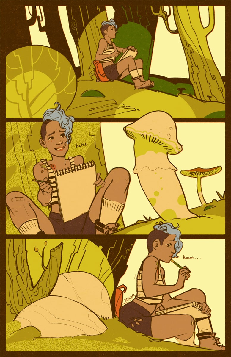 Poppy & Oak is a playful, retro-inspired 18-page, full color erotic comic featuring Poppy, an artsy, job-hunting, trans girl and a voluptuous, rather friendly dryad named Oak. Written and drawn by Winton Kidd.